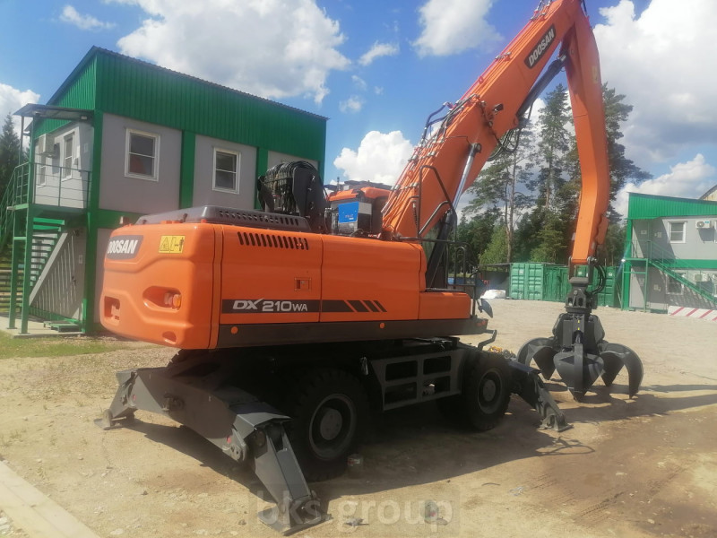 Колесный перегружатель Doosan Dx210wa с грейферным захватом и магнитной шайбой, с системой автоматической централизованной смазки Linkoln и предпусковым подогревателем